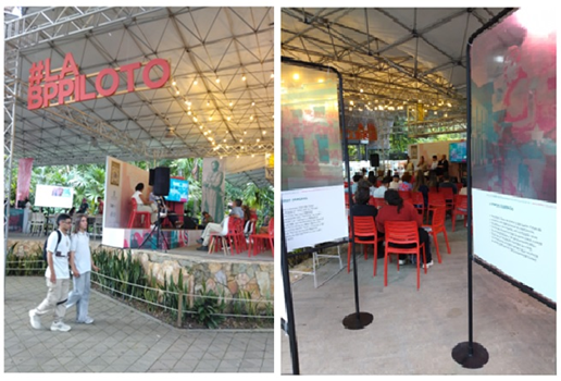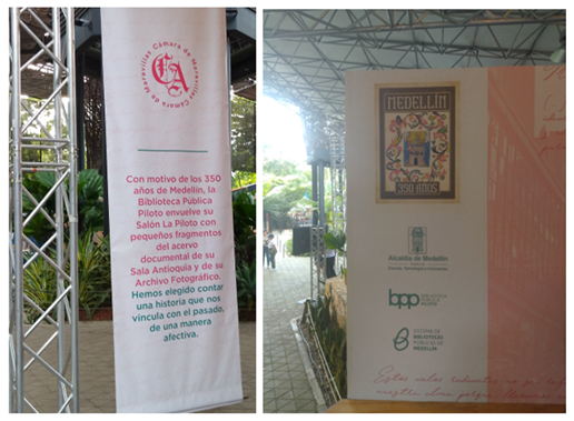 Solo una sección ubicada bajo el techo hermosísimo del Orquideorama estuvo dedicada a los 350 años de la ciudad: el salón de la Biblioteca Pública Piloto, que hizo de la celebración su leitmotiv. Allí estaba el famoso logo del cumpleaños, que por ser un ejemplar único debiera conservarse en algún museo. Esta estampilla estaba pegada en la pared y no se distribuyó por miles a los asistentes dentro de la programación del evento ni sirvió de cortina a la entrada de los pabellones.