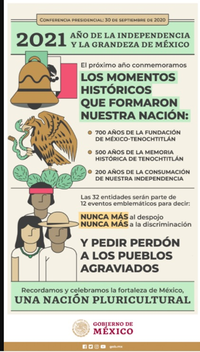 Tomado de: https://www.eluniversal.com.mx/nacion/amlo-el-plan-para-conmemorar-en-2021-la-fundacion-de-tenochtitlan-y-la-independencia