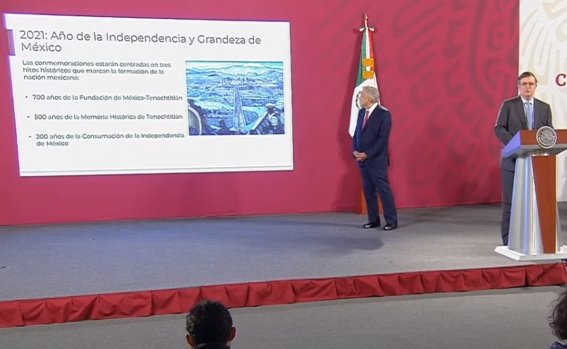 El canciller Marcelo Ebrard mencionó que el próximo año se conmemorarán los 700 años de la fundación de México-Tenochtitlan, 500 años de la memoria histórica de Tenochtitlan y 200 años de la consumación de la Independencia de México.